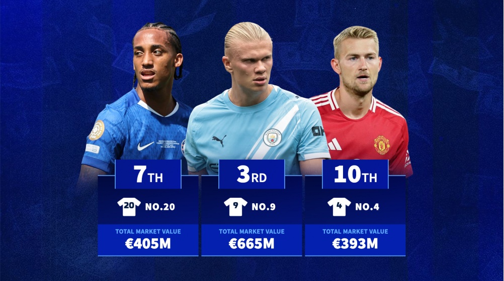 Bất ngờ lớn nằm ở vị trí thứ bảy, khi áo số 24 – vốn không thuộc nhóm số áo truyền thống – đạt giá trị 418 triệu euro. Hai cái tên dẫn dắt nhóm này là Josko Gvardiol (75 triệu euro) và Amadou Onana (50 triệu euro).