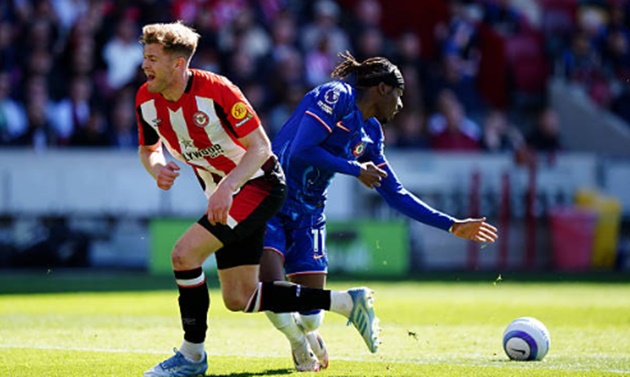 Chelsea vất vả trước những đợt phản công của đối thủ.Hiệp hai trận đấu giữa Brentford và Chelsea chứng kiến sự lột xác của đội khách sau khi Nicolas Jackson và sau đó là Cole Palmer cùng Pedro Neto được tung vào sân. Chelsea tạo ra sức ép nghẹt thở, liên tục bắn phá khung thành của Mark Flekken, người đã có những pha cứu thua xuất sắc trước các cú dứt điểm của Neto và Reece James.