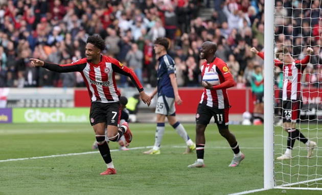 Tình huống ném biên từ Michael Kayode mở ra bàn gỡ 1-1, với Luke Shaw phản lưới nhà. Trong khi đó, quả tạt của Christian Norgaard vào khu vực mà De Ligt thường trấn giữ tạo điều kiện cho Kevin Schade nâng tỉ số lên 2-1. Sau giờ nghỉ, Brentford không hề giảm nhịp. Bàn thắng thứ ba tiếp tục đến từ tình huống bóng bổng khi Kevin Schade đánh đầu không ai theo kèm, và đến phút 74, hàng thủ Quỷ đỏ bị xuyên phá hoàn toàn bởi pha phối hợp đơn giản nhưng hiệu quả bên cánh phải. Người ghi bàn là Yoane Wissa.