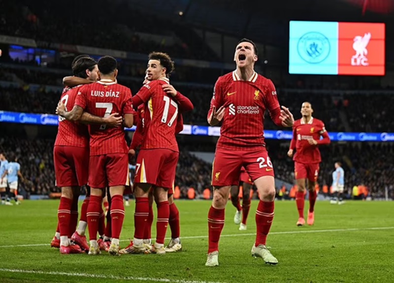 Liverpool một mình một ngựa trong cuộc đua vô địch Premier League.Cuối tuần qua, thầy trò HLV Arne Slot đã giành chiến thắng 2-0 trước Man City ở vòng 26, nhờ các pha lập công của Mohamed Salah và Dominik Szoboszlai. Chiến thắng này giúp The Reds củng cố ngôi đầu bảng và tạo khoảng cách 11 điểm với đội xếp thứ hai, Arsenal. Khi mùa giải chỉ còn 12 vòng đấu, Liverpool cần thêm 9 chiến thắng nữa để chính thức đăng quang mà không cần quan tâm đến kết quả của các đối thủ.