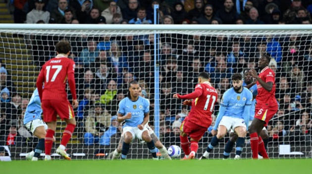 Salah dứt điểm chạm chân Ake mở tỷ số cho Liverpool.Mohamed Salah tiếp tục chứng tỏ đẳng cấp với pha lập công thứ 25 tại Premier League mùa này. Tuy nhiên điểm nhấn đáng chú ý chính là cách bàn thắng này đến chỉ ít phút sau khi HLV Pep Guardiola bày tỏ sự không hài lòng với Nathan Ake.